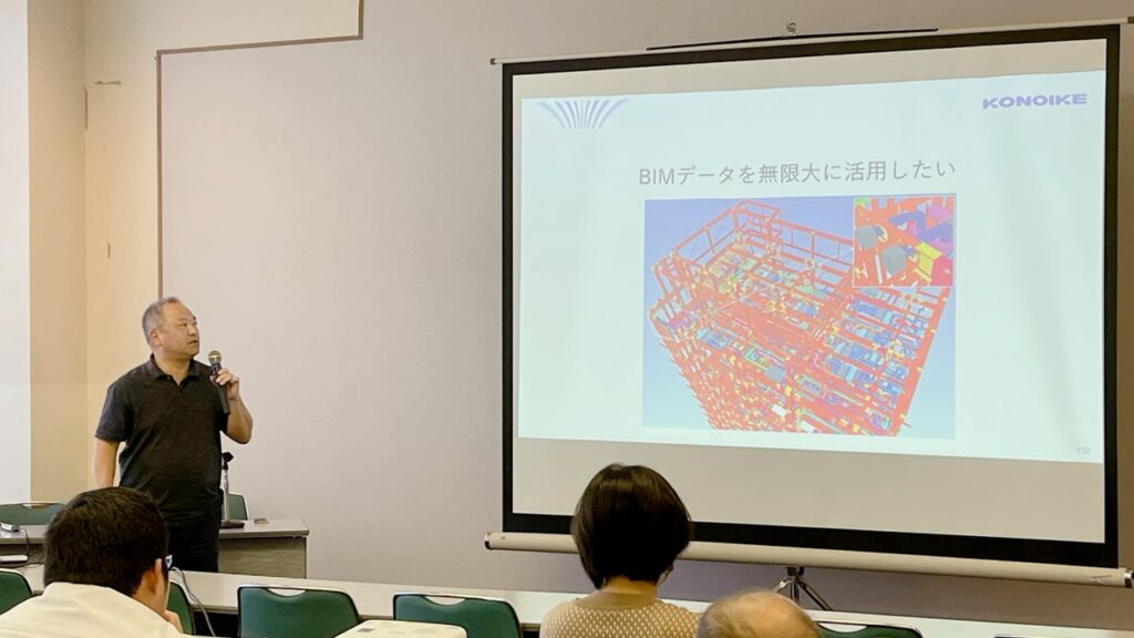 2日間の研修でBIMの基礎から応用までを学び、各社で課題設定・モデル作成を実施。約1か月後に成果発表会を行い、相互学習を促進しています。